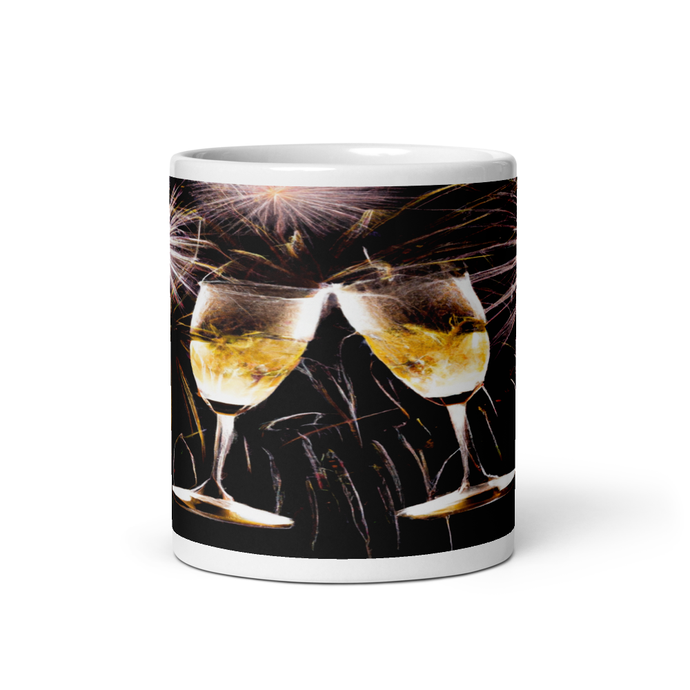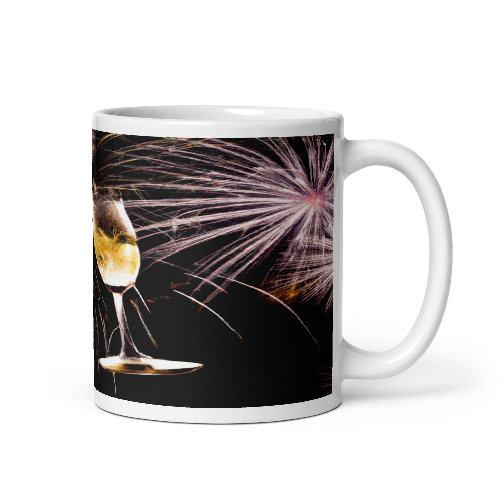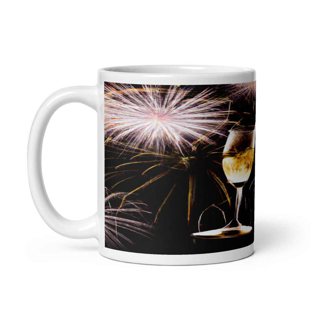 Celebrate in Style 11oz Ceramic Mug with Champagne Glasses and Fireworks Design