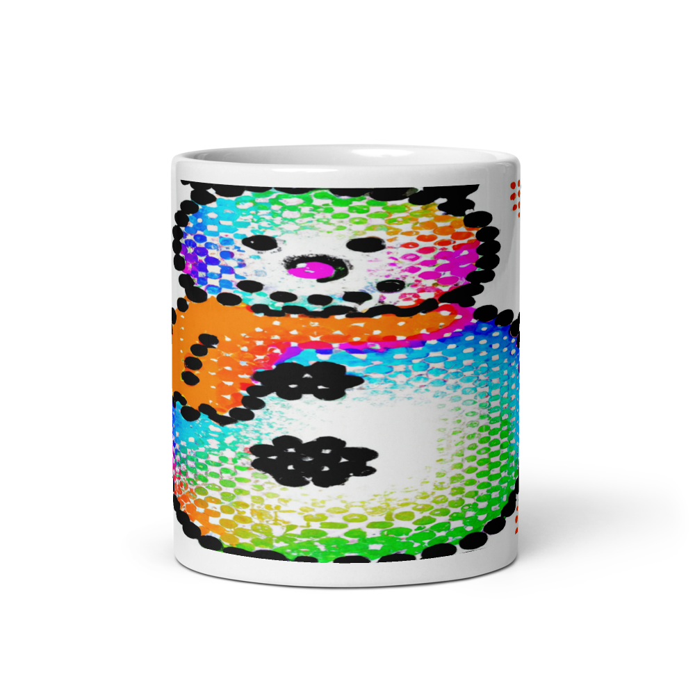 Cheerful Snowman in a Colorful Dot Design Ceramic 11oz Mug – Lead and BPA-Free