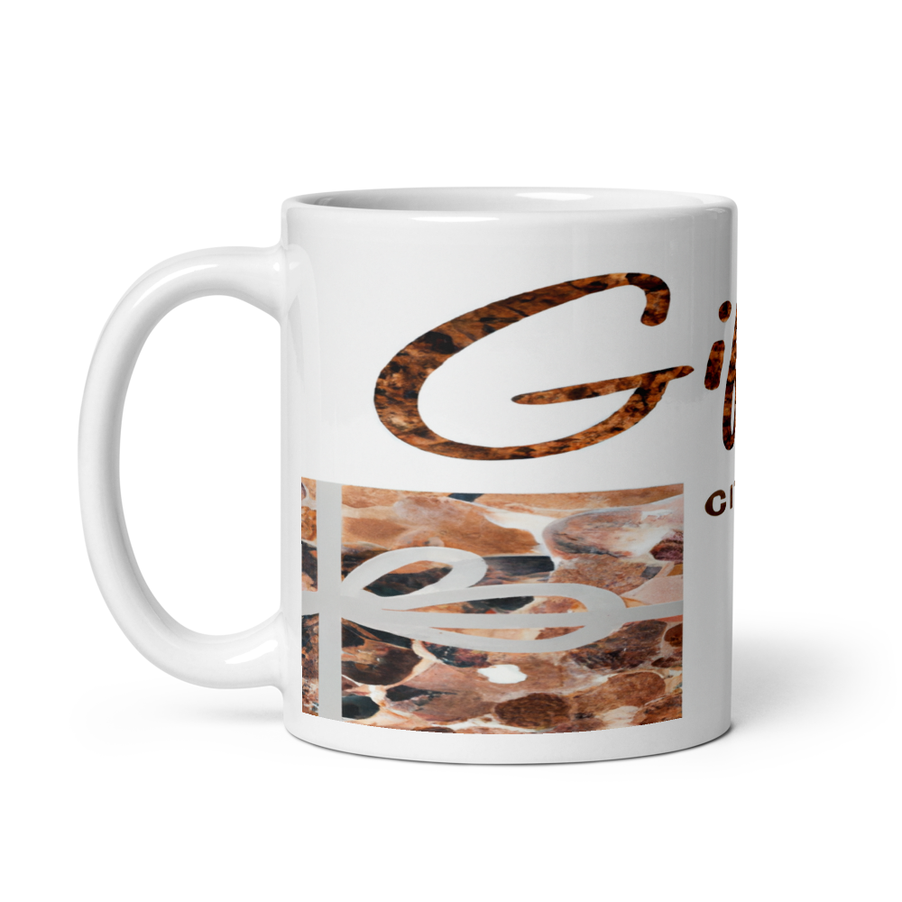 Chic Holiday Decor Mug with Abstract Dot Textures in Copper and Bronze