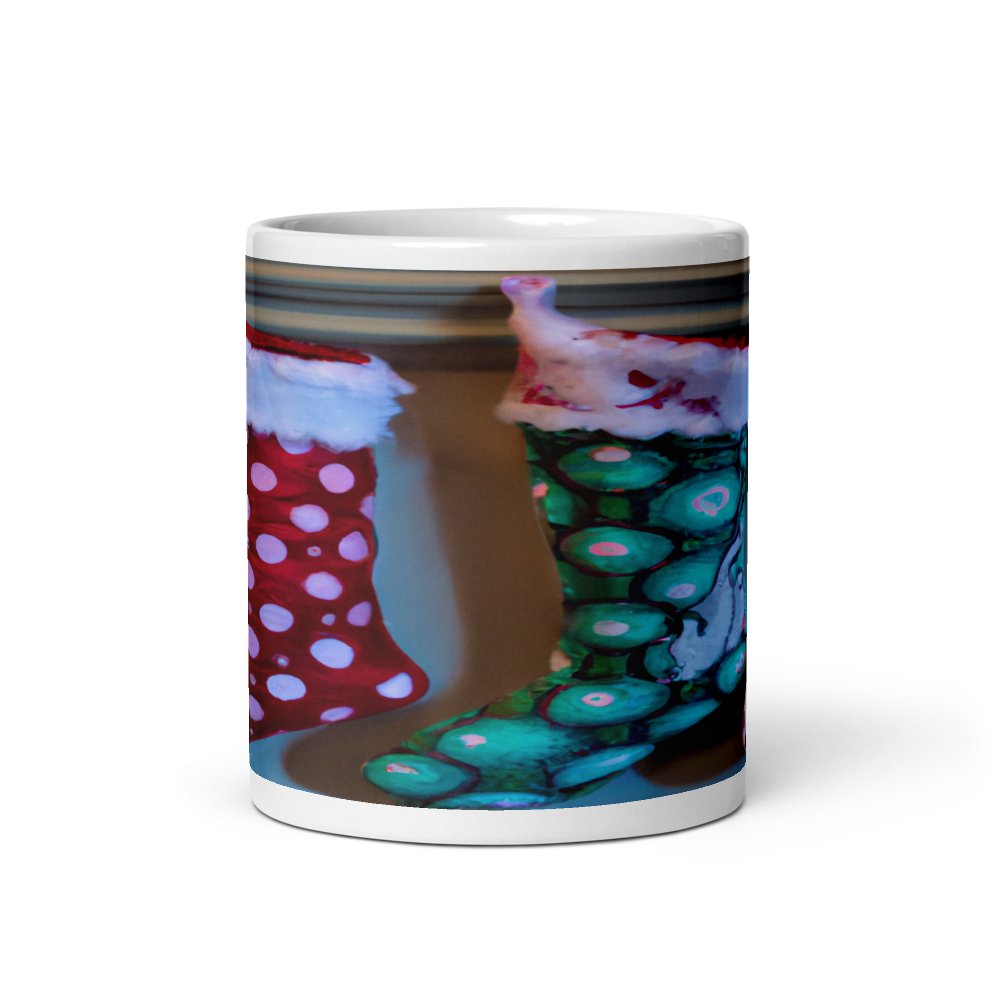 Colorful Christmas Stockings Ceramic 11oz Mug with Intricate Dot Patterns