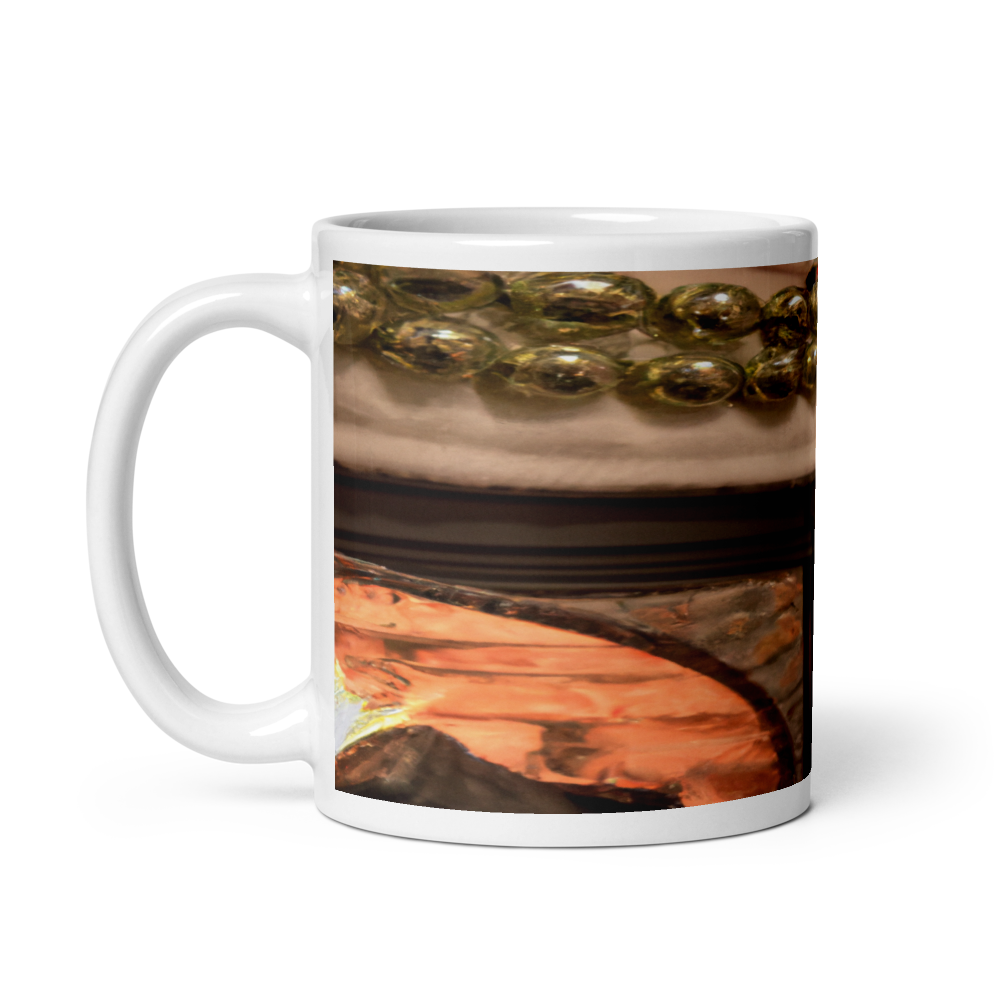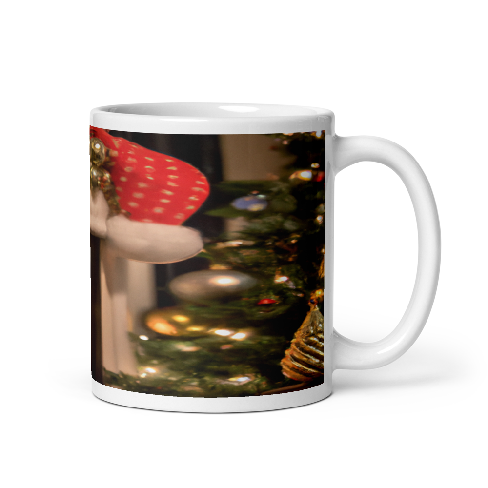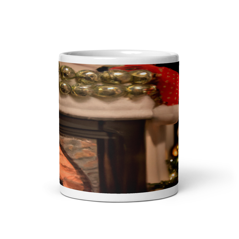 Cozy Christmas Scene Ceramic 11oz Mug with Glowing Fireplace and Santa Hat