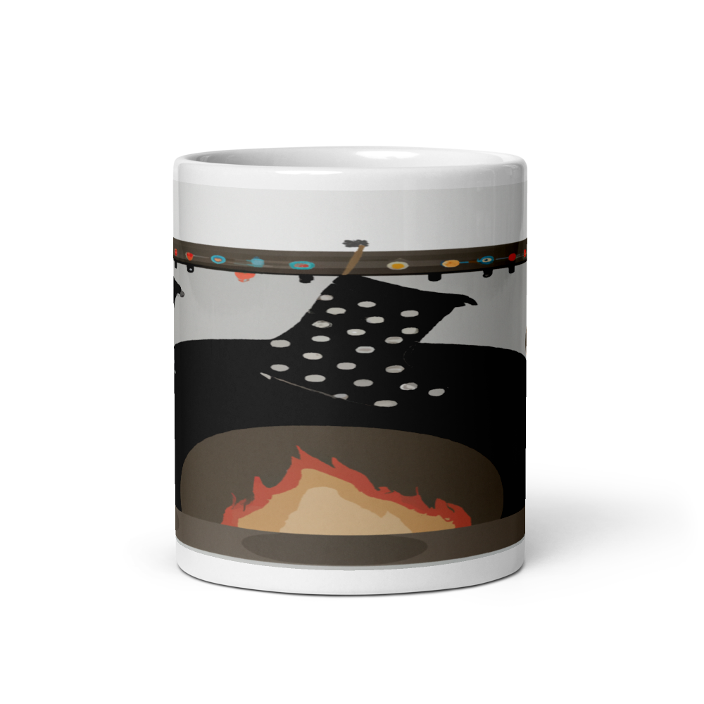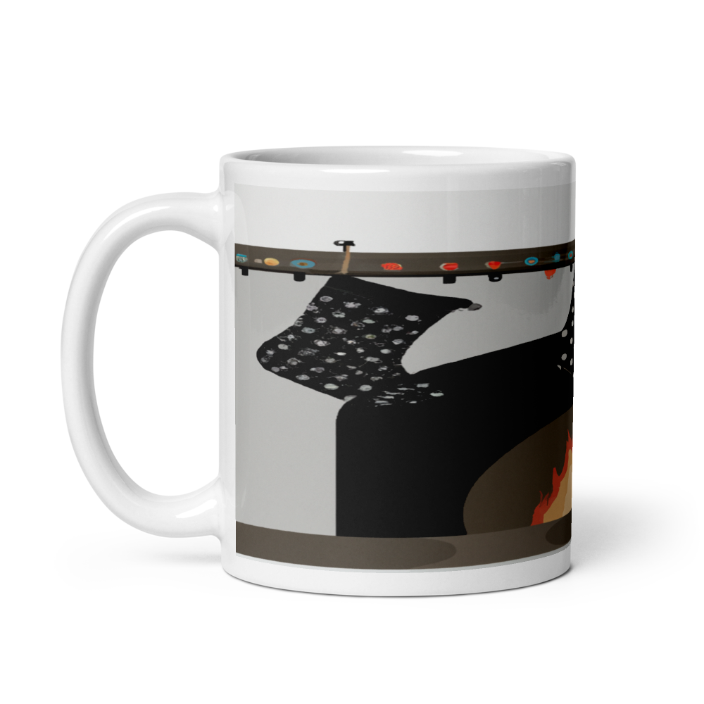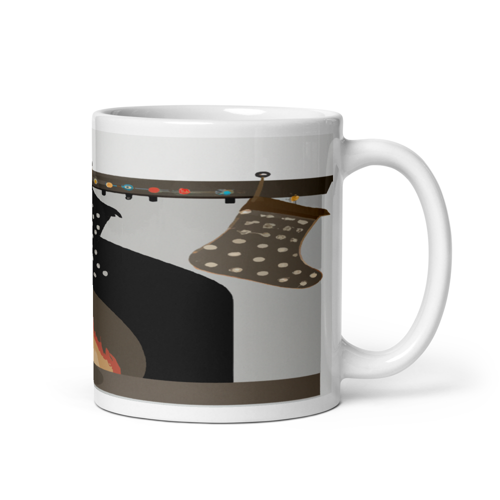 Cozy Fireplace Stockings 11oz Ceramic Mug with Minimalist Dotted Patterns