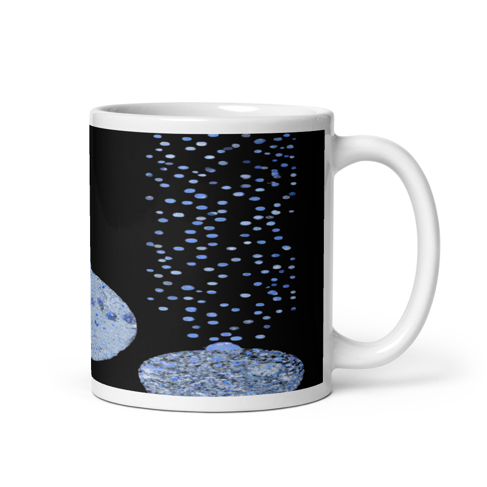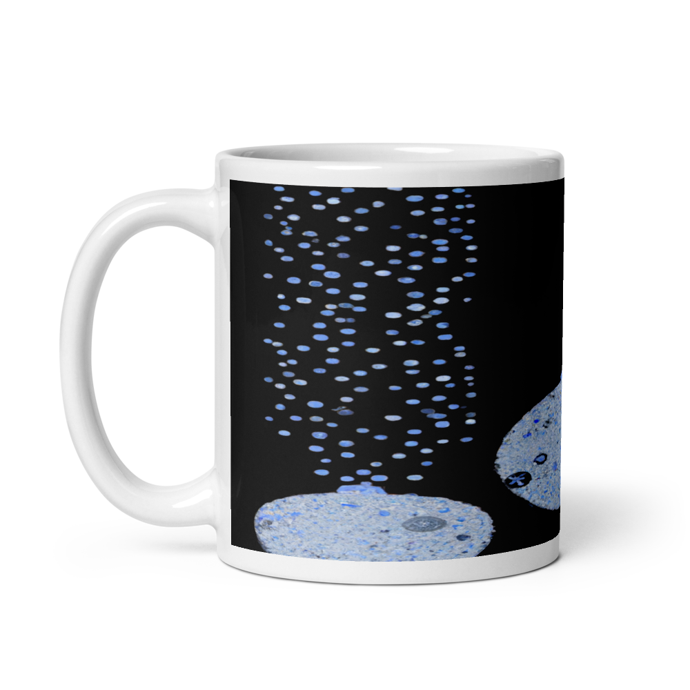 Elegant Christmas Baubles Ceramic Mug – Silver and Blue Dot Art Design