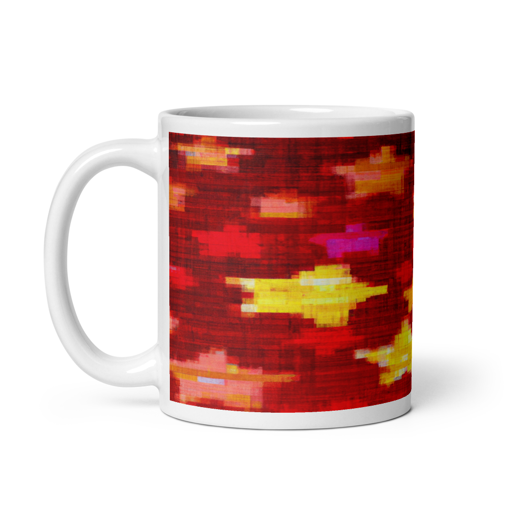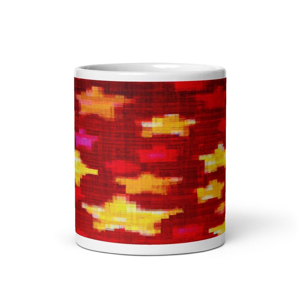 Elegant Christmas Stars Dot Art Ceramic 11oz Mug in Red and Gold Hues