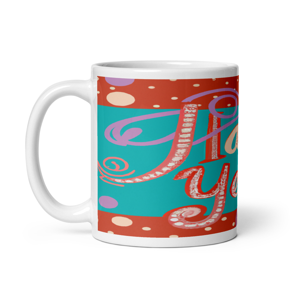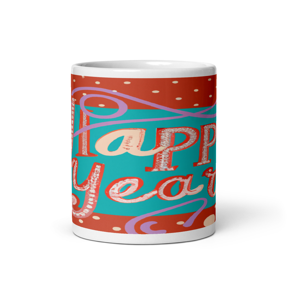 Elegant Dotted Script Happy New Year Holiday Greeting 11oz Ceramic Mug