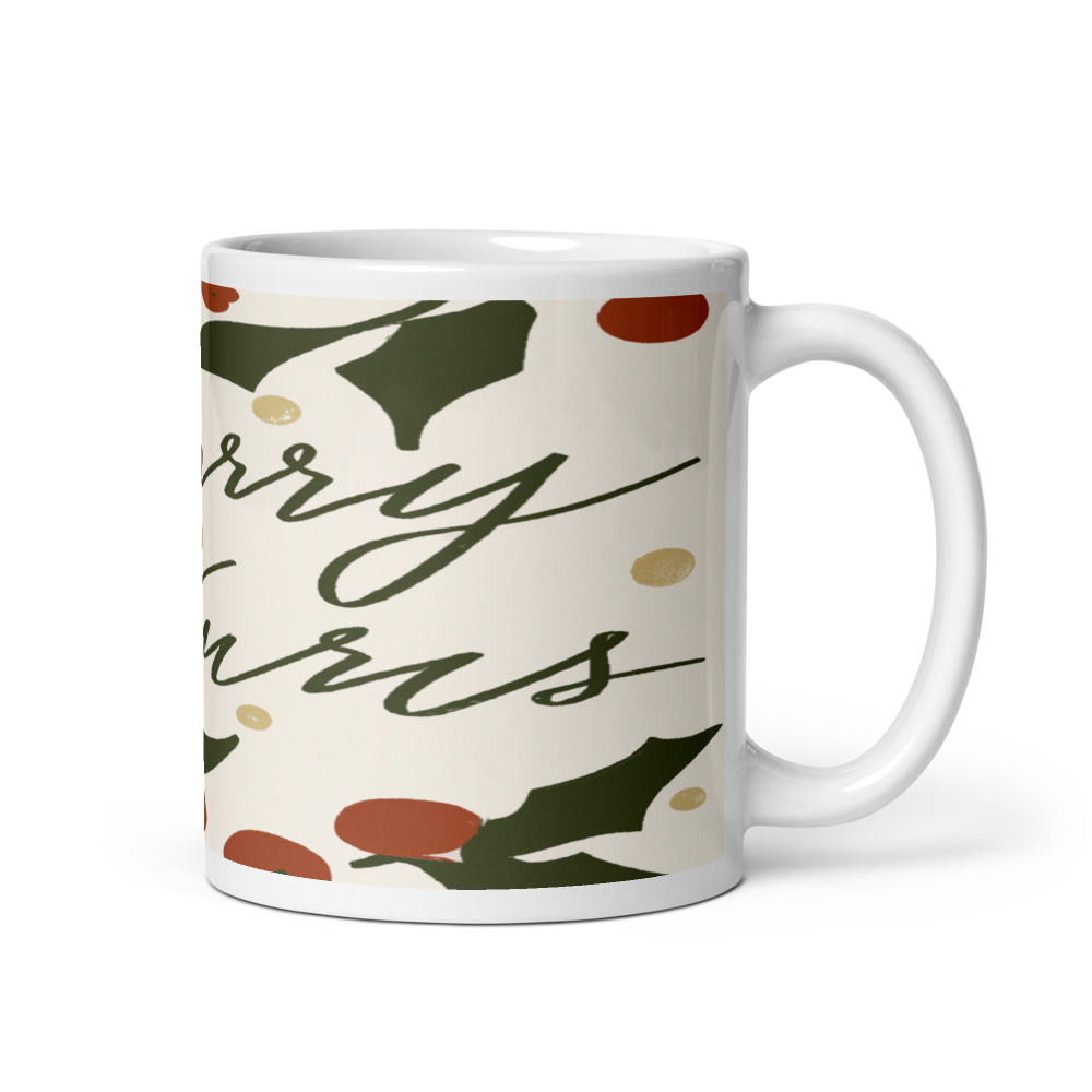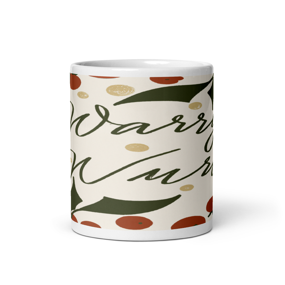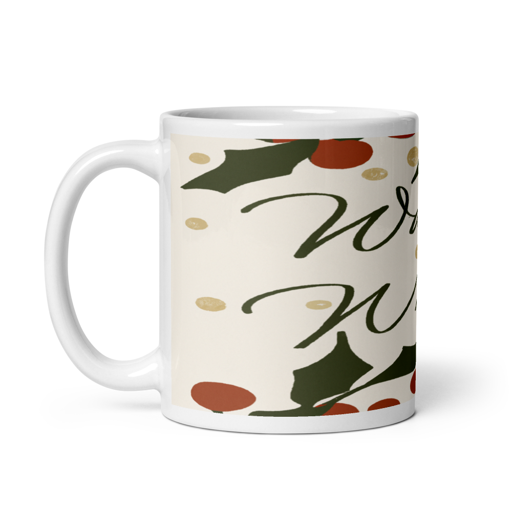 Elegant ‘Warm Wishes’ Holiday Mug with Holly Leaves and Berries Design