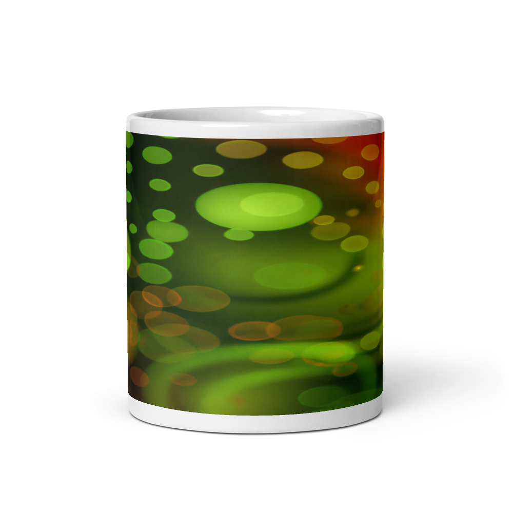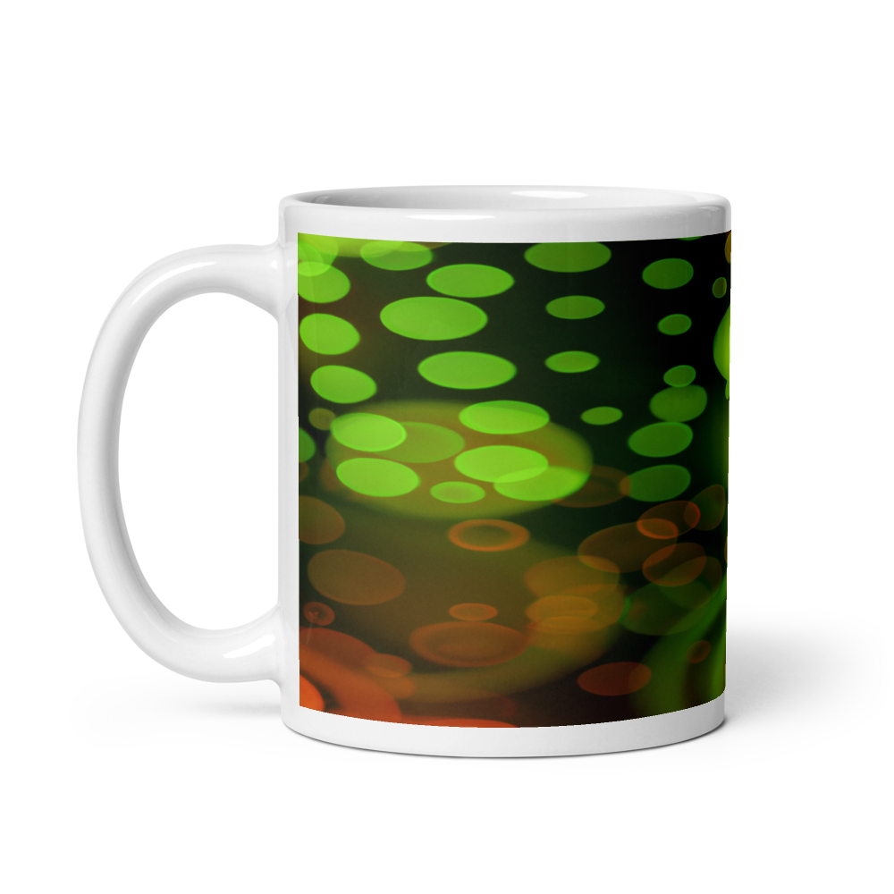 – Features a contemporary digital artwork with swirling bokeh lights and vibrant colors