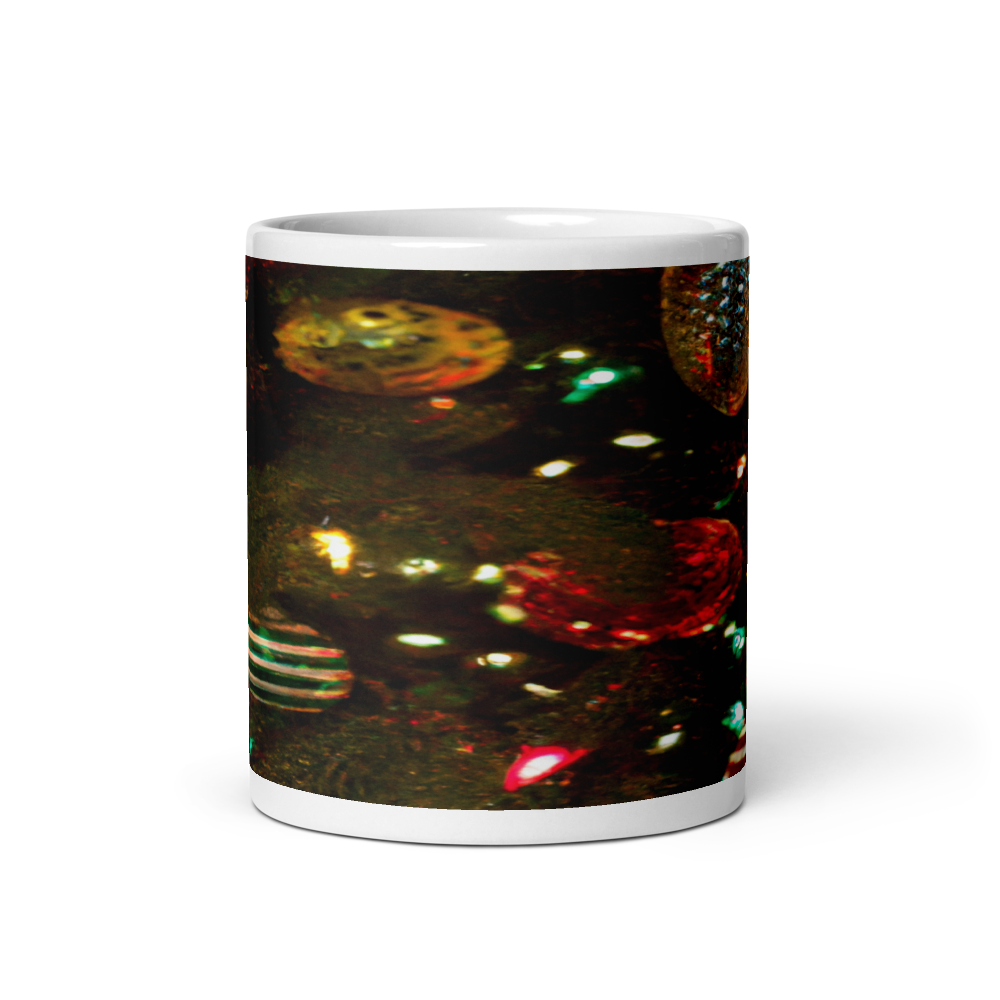 – Enjoy your coffee or tea in this stylish mug featuring ornaments hanging on a Christmas tree