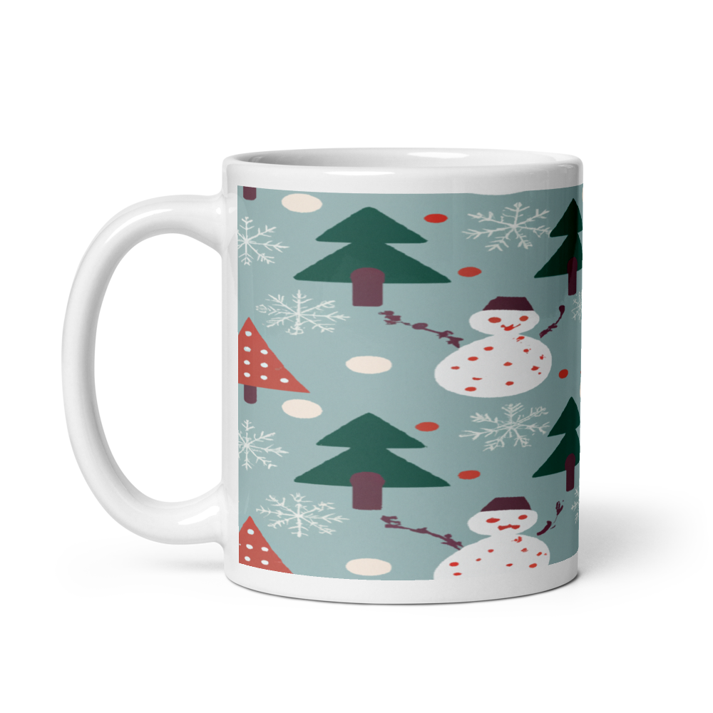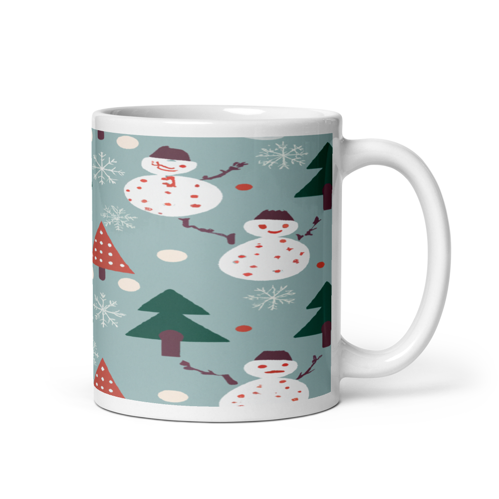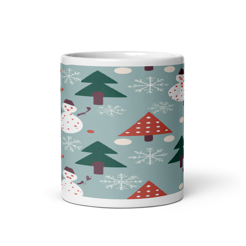 Festive Christmas Trees and Snowmen Dotted Pattern 11oz Ceramic Mug