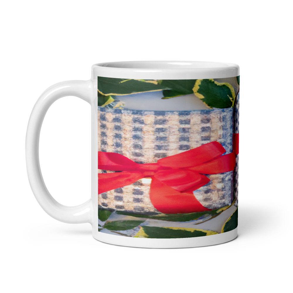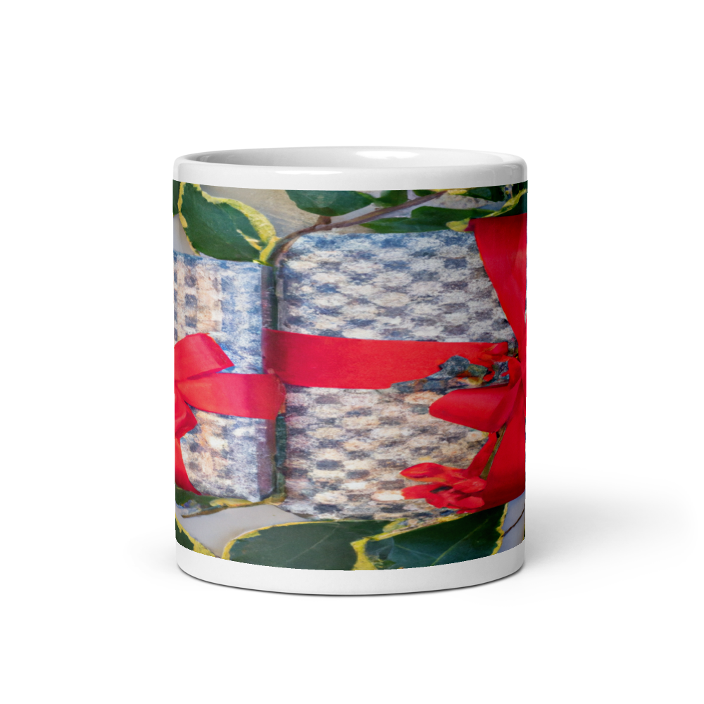 Festive Glow Ceramic 11oz Mug – Elegant Gift Boxes and Holly Leaves Design