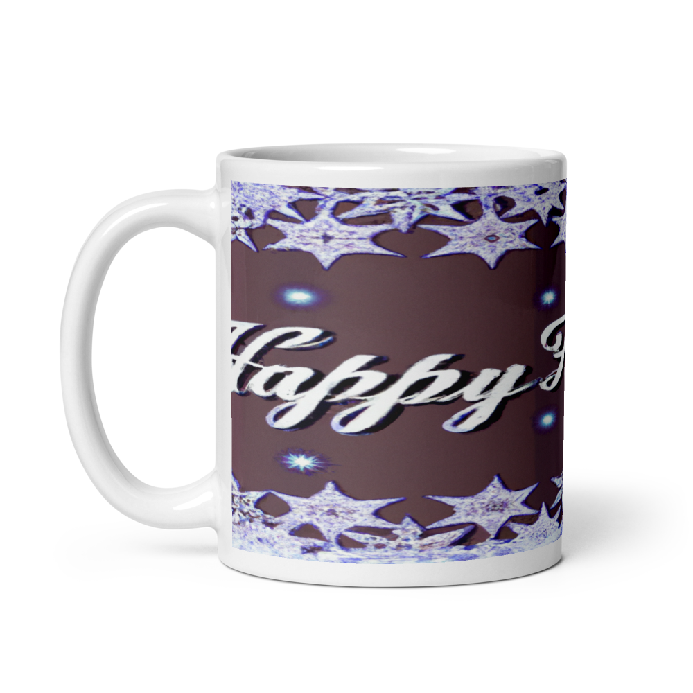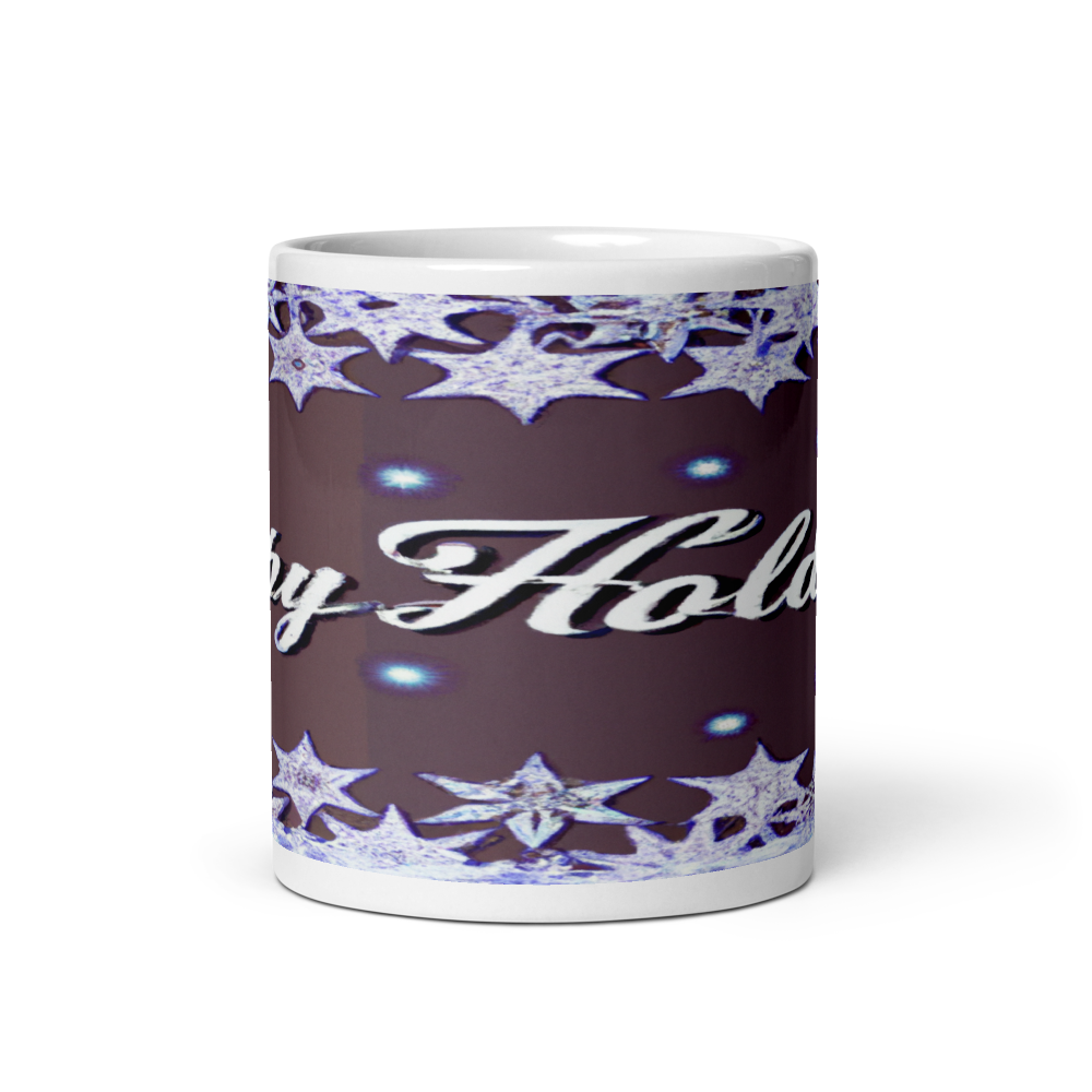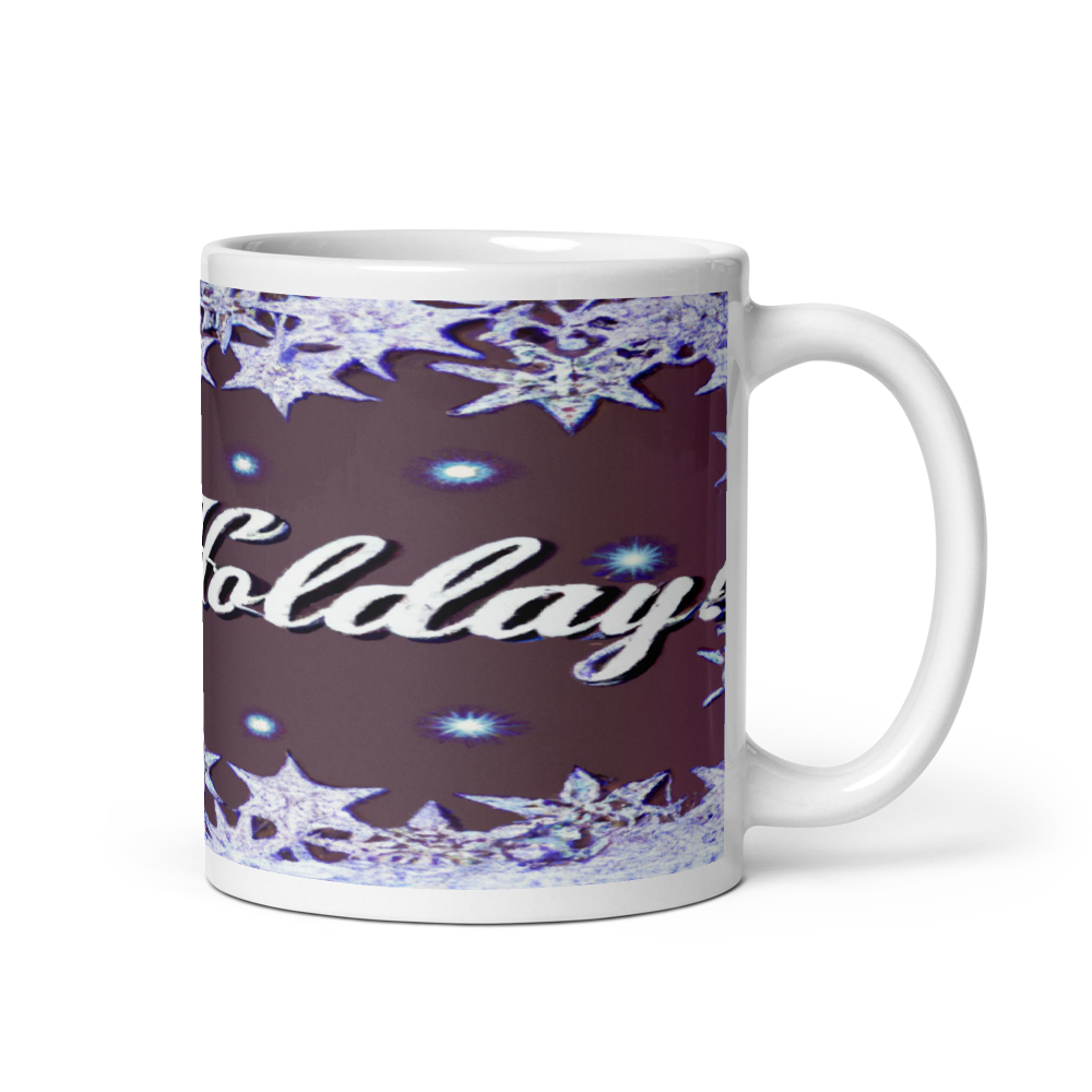 Festive Holiday Greeting 11oz Mug with Shimmering Snowflakes Border