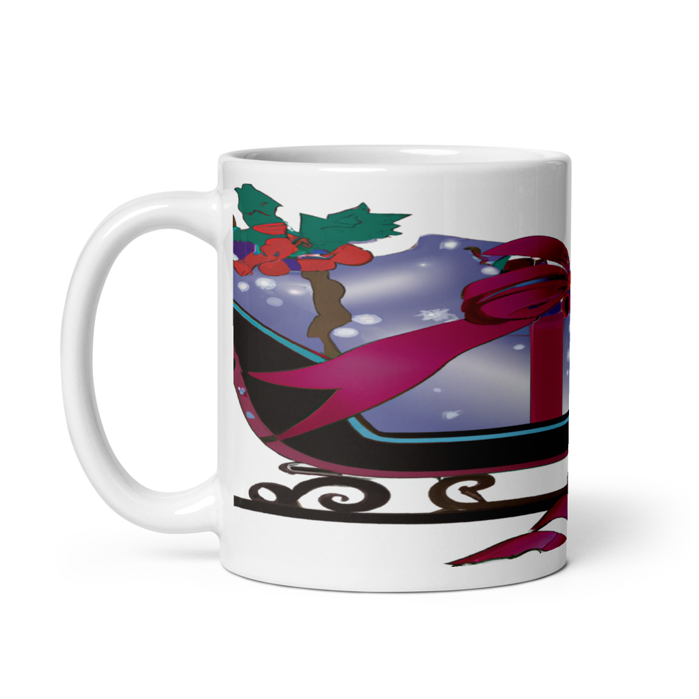 Festive Holiday Sleigh Ceramic 11oz Mug: Magical Christmas Eve Ride