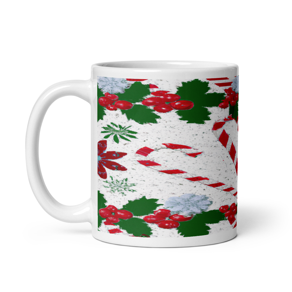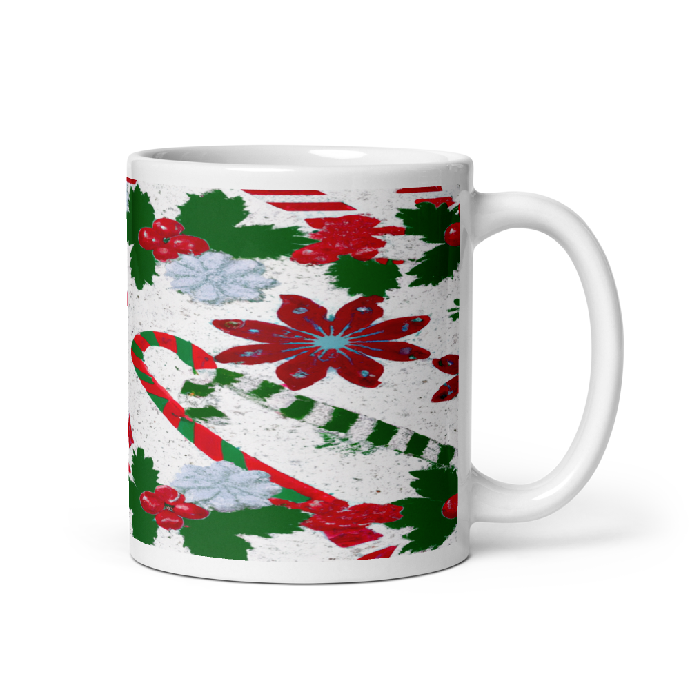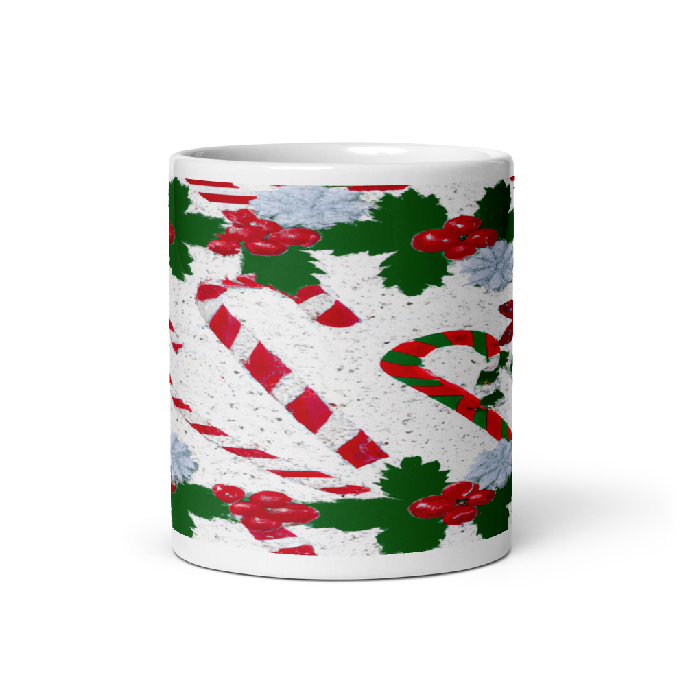 Festive Joy 11oz Ceramic Mug – Dotted Candy Canes, Snowflakes, Wreaths