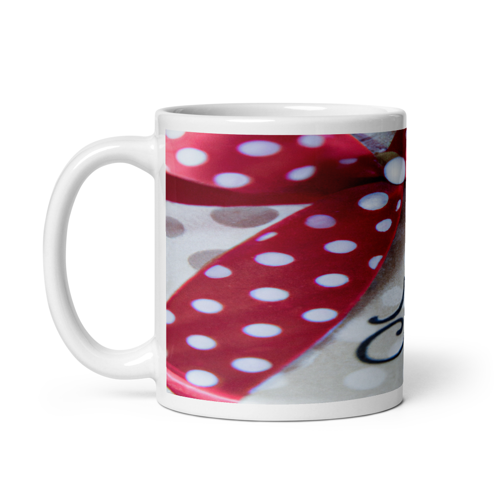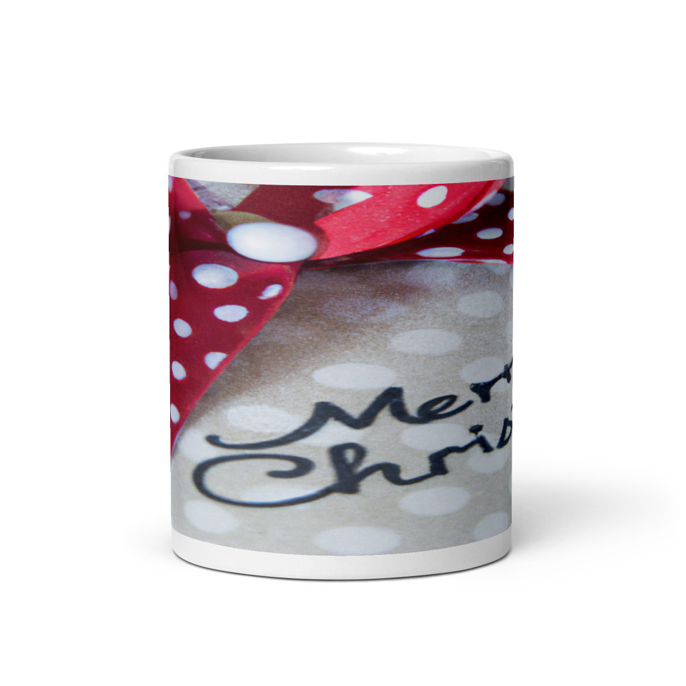 Festive Merry Christmas 11oz Ceramic Mug with Dotted Ribbon Gift Box