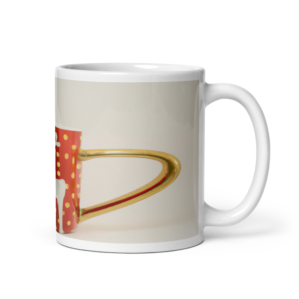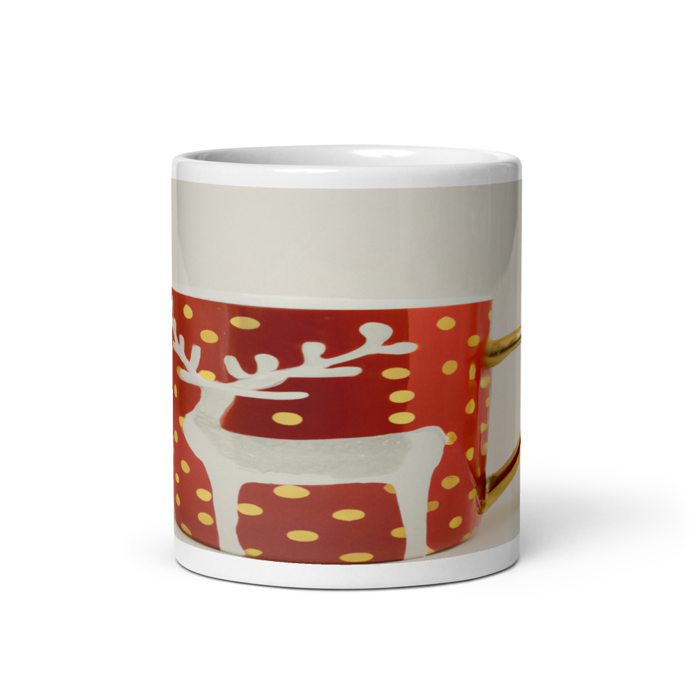 Festive Reindeer Dotted Design 11oz Ceramic Mug in Red and Gold Tones