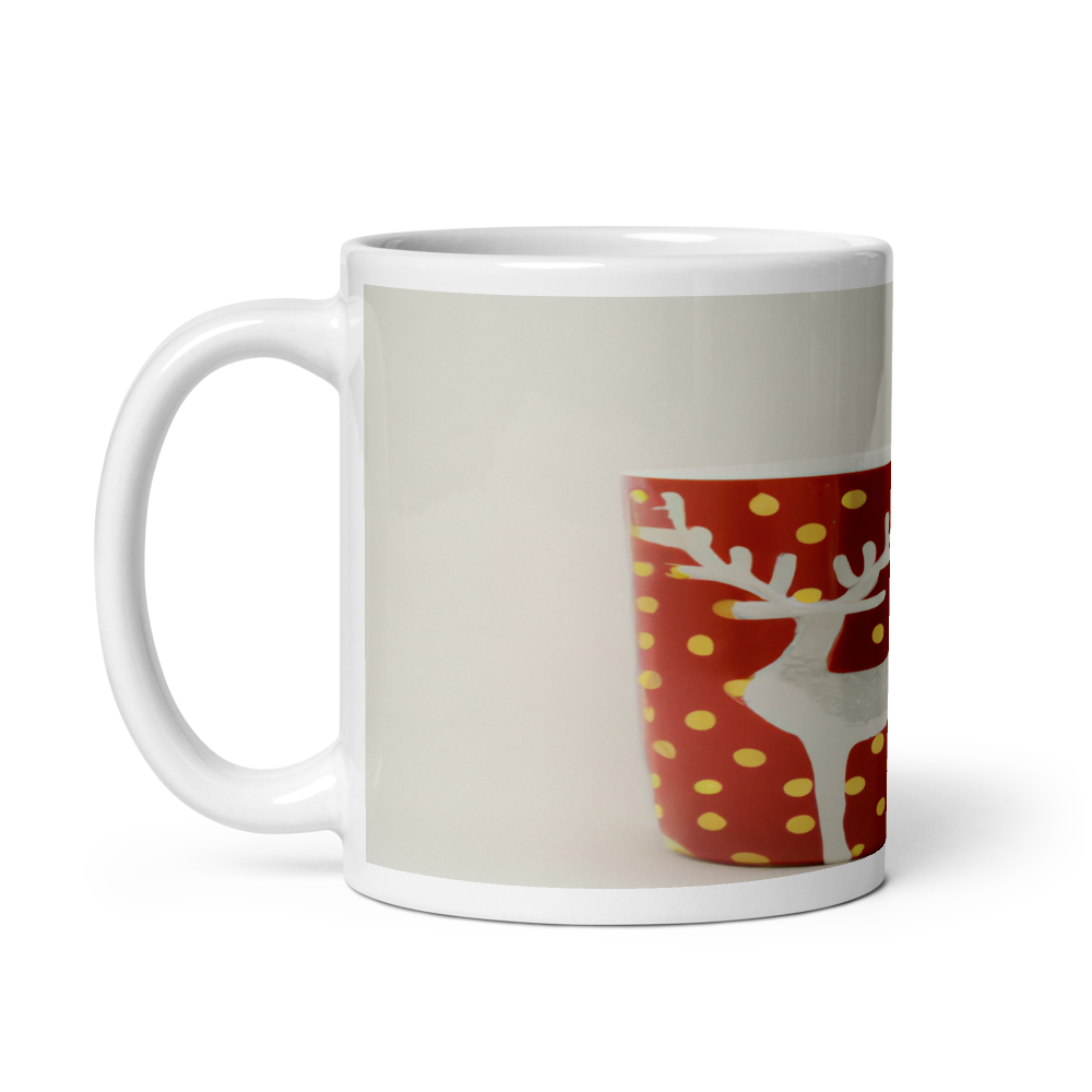 – Showcase your holiday spirit with this modern mug adorned with a dotted reindeer design