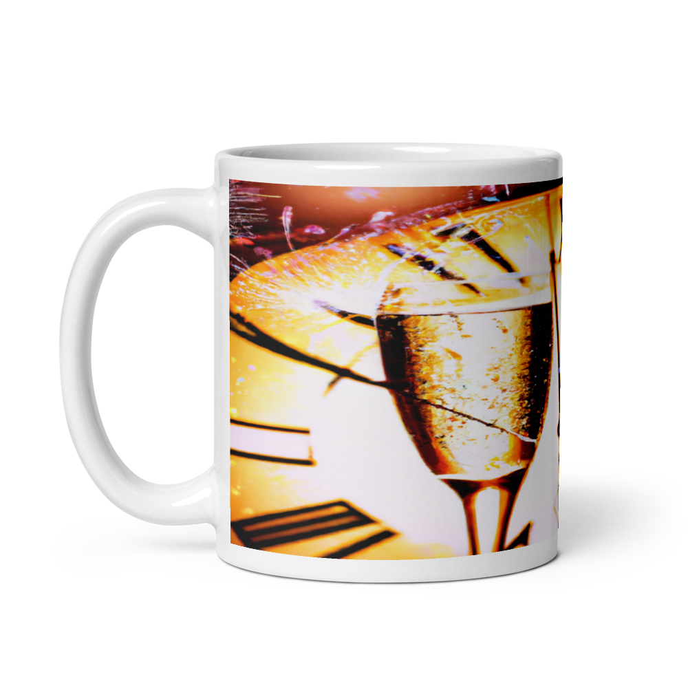 Midnight Celebration 11oz Ceramic Mug with Fireworks and Champagne Design
