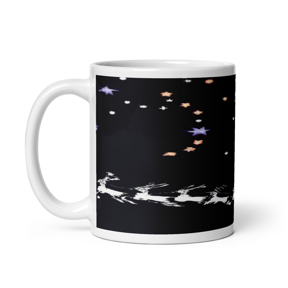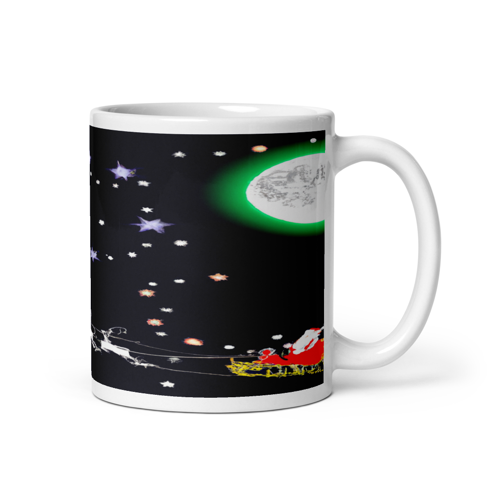Midnight Magic Ceramic Mug – Santa Claus Flying Through the Night Sky