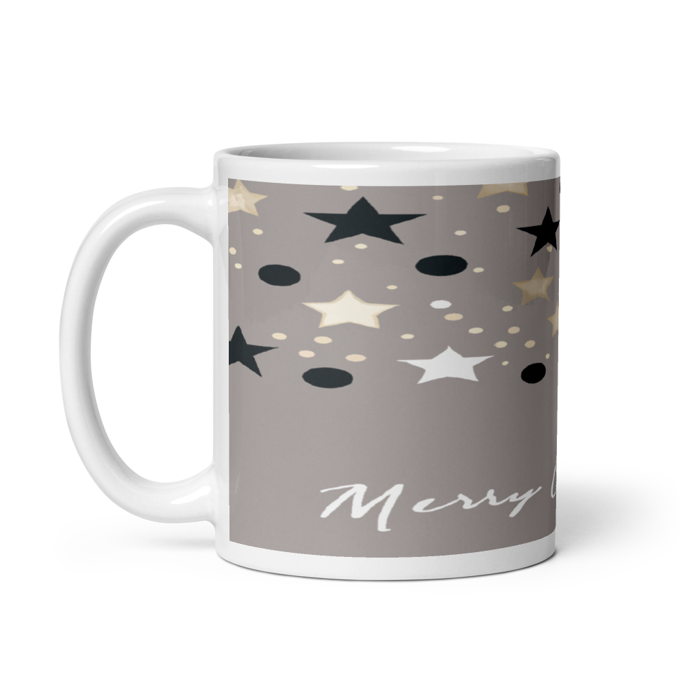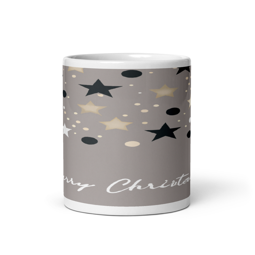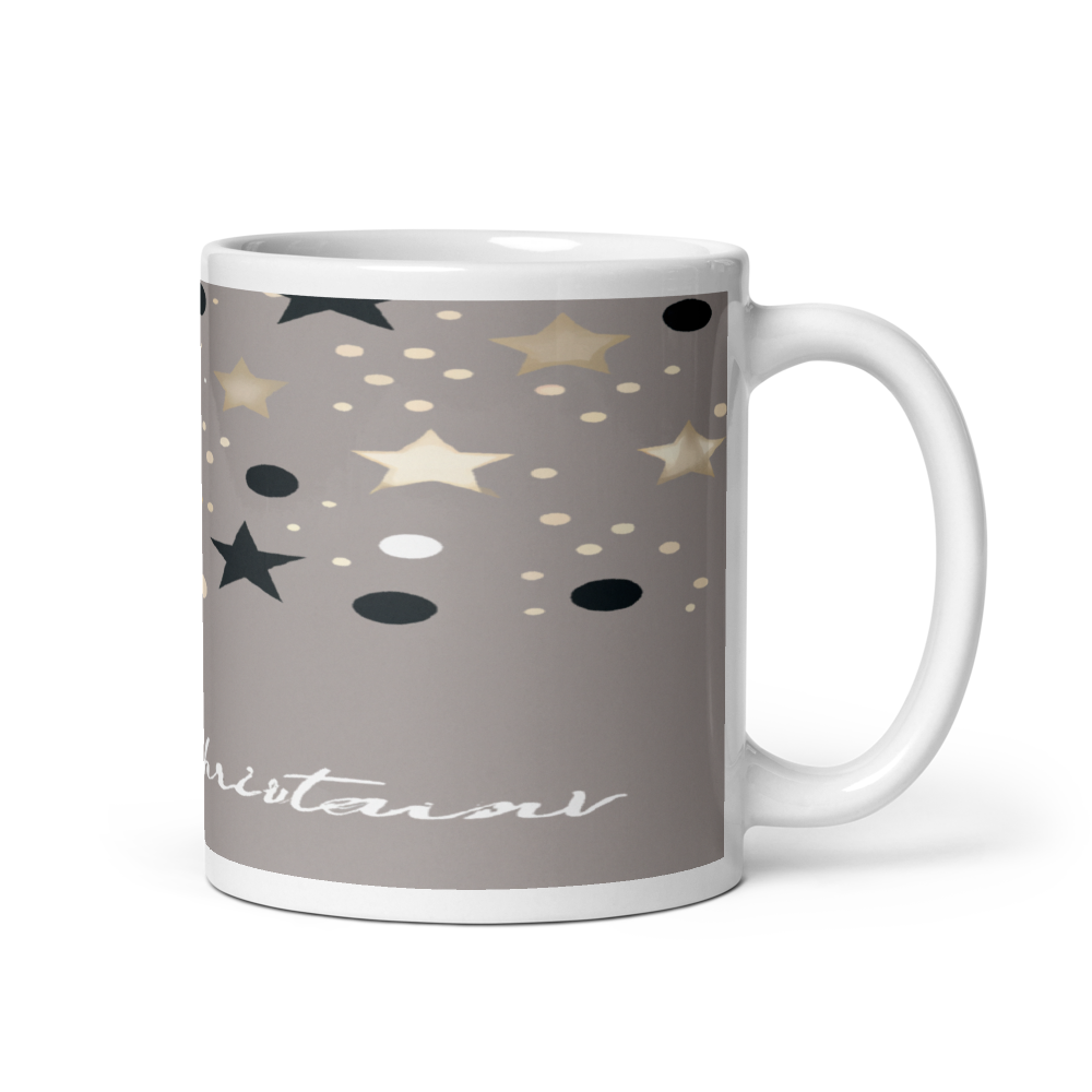 Modern Holiday Greetings 11oz Ceramic Mug with Gold Dots and Silver Stars