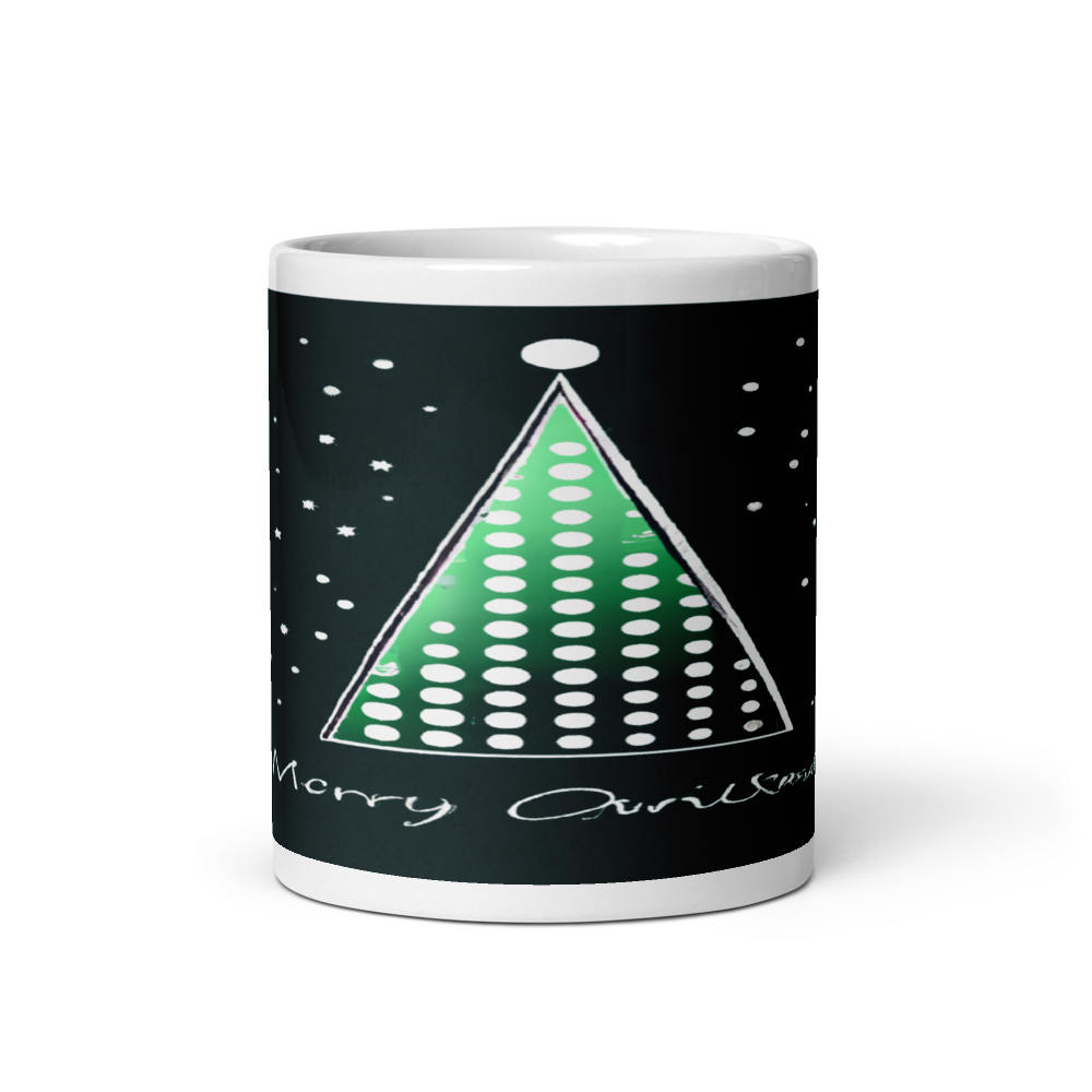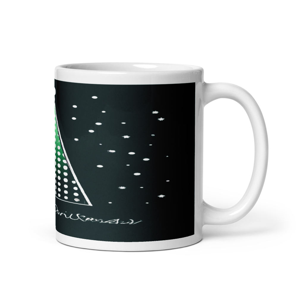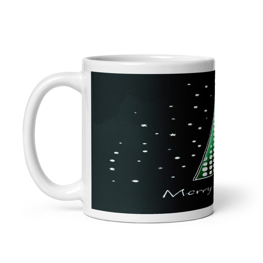 Sleek & Modern Christmas Tree Dot Art 11oz Ceramic Mug in Green & Silver