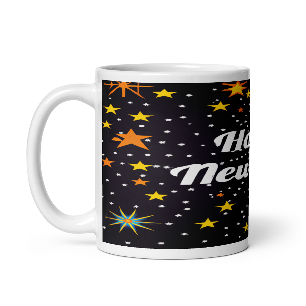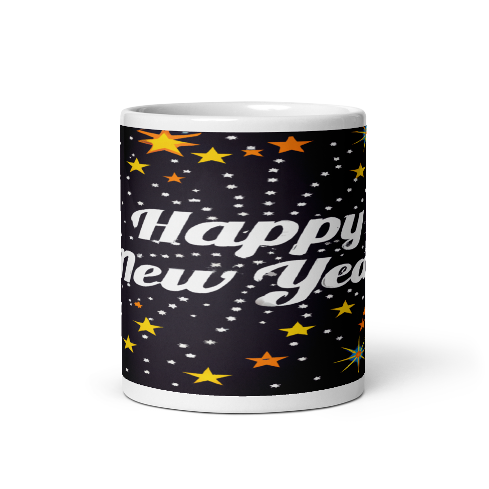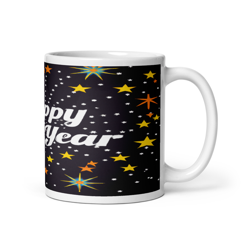Stylish Holiday Greeting 11oz Ceramic Mug with Happy New Year Design