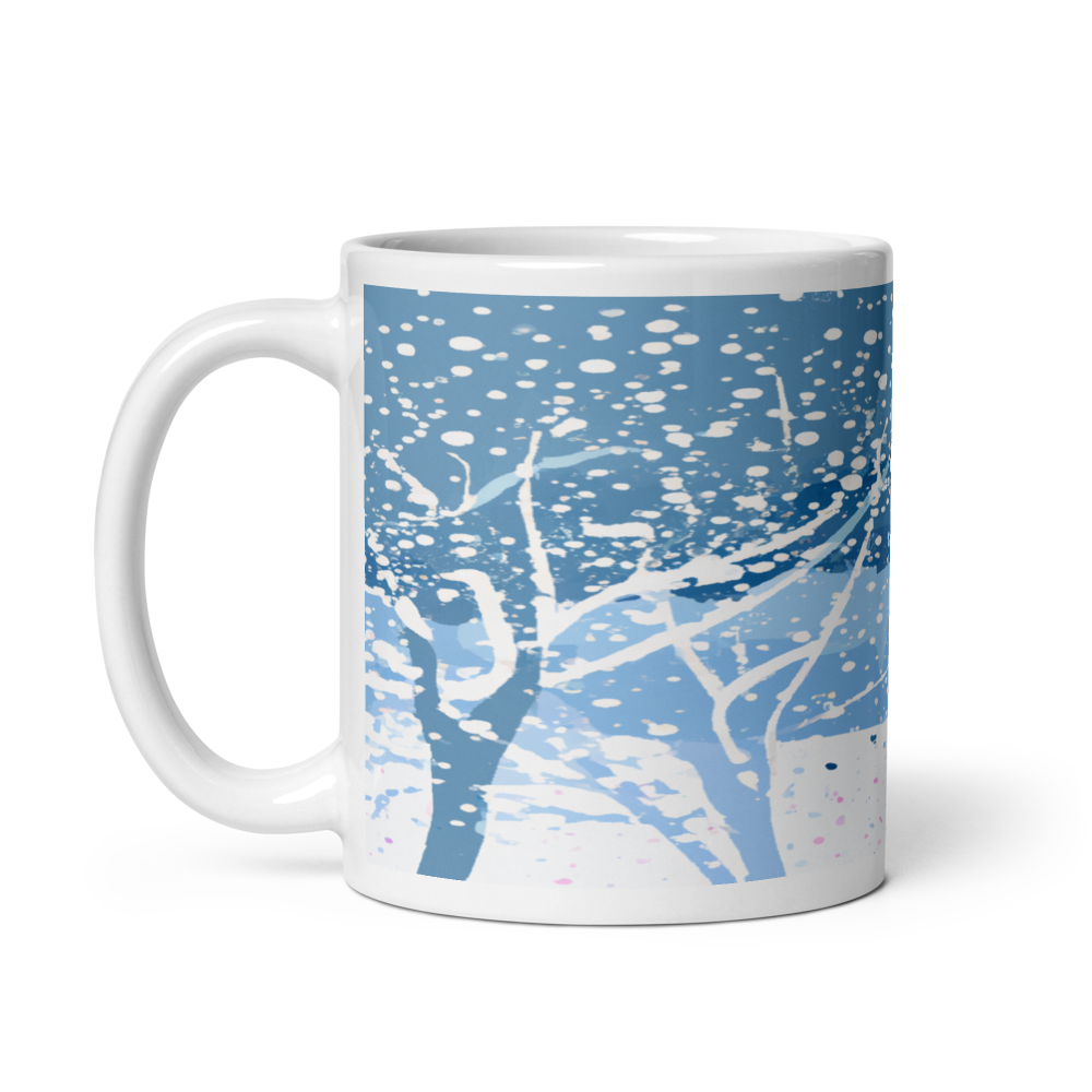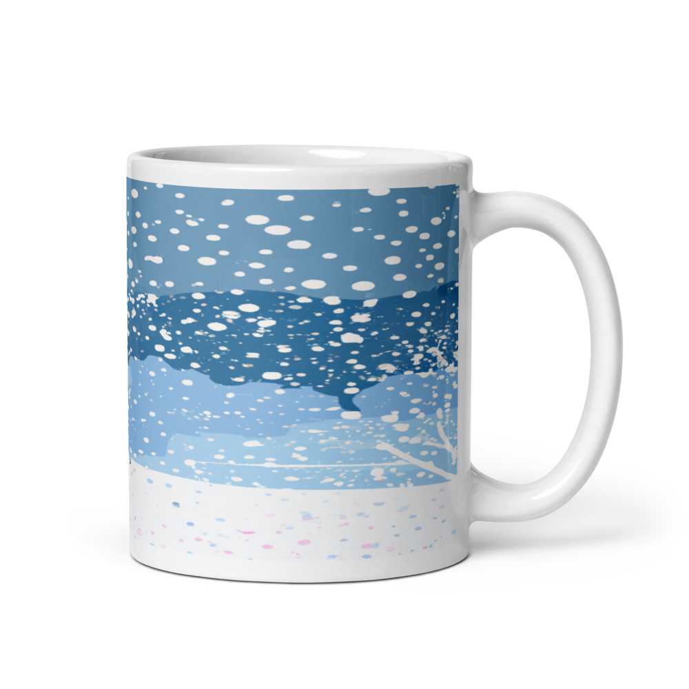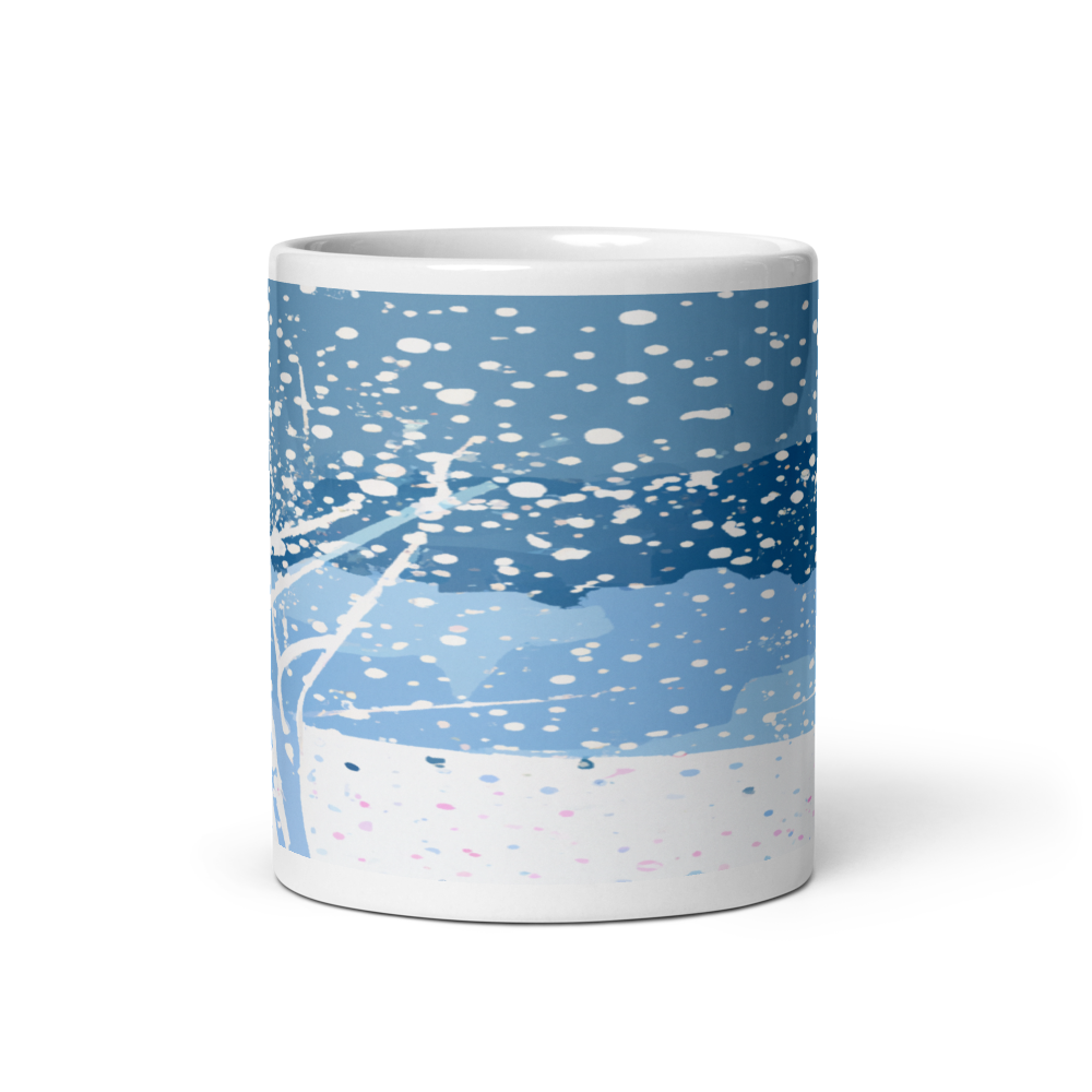 Tranquil Winter Wonderland Ceramic 11oz Mug in Blue and White Snowfall