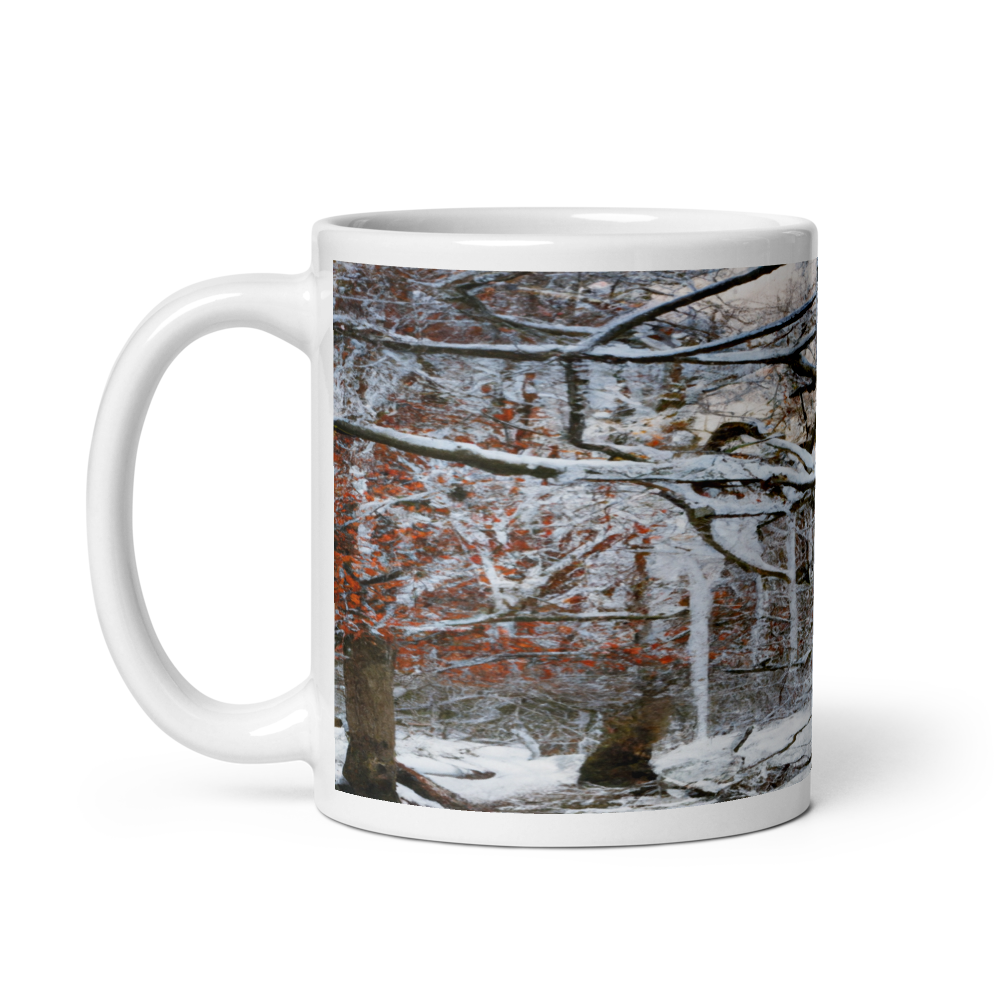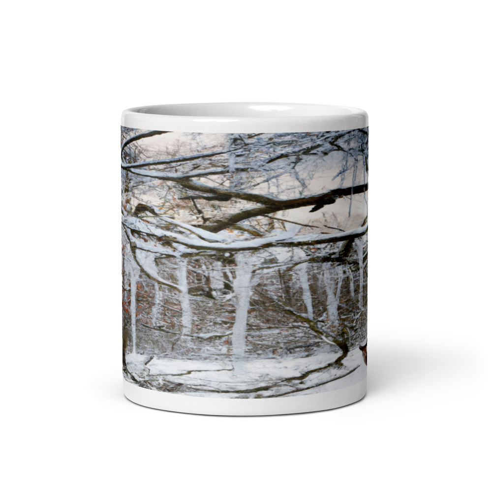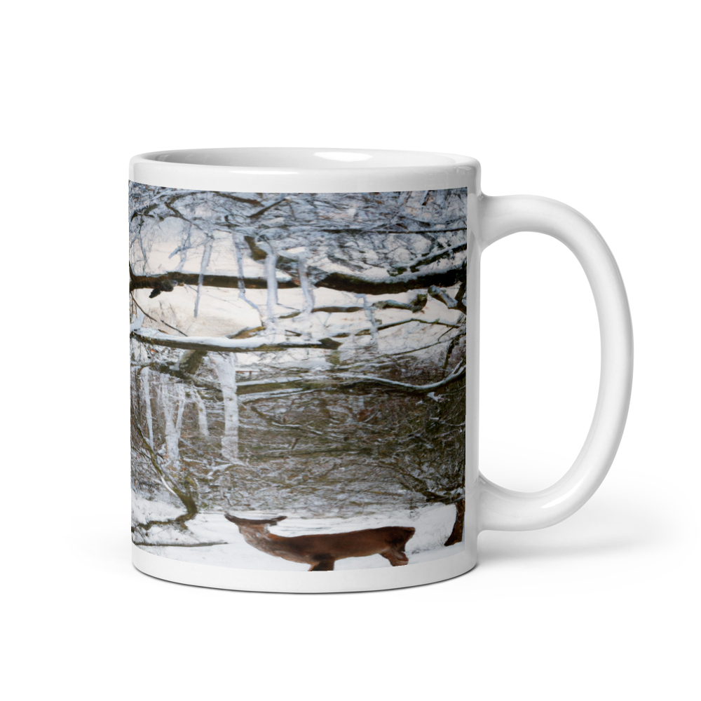 Winter Wonderland Ceramic Mug – Frosty Forest Scene with Deer, 11oz