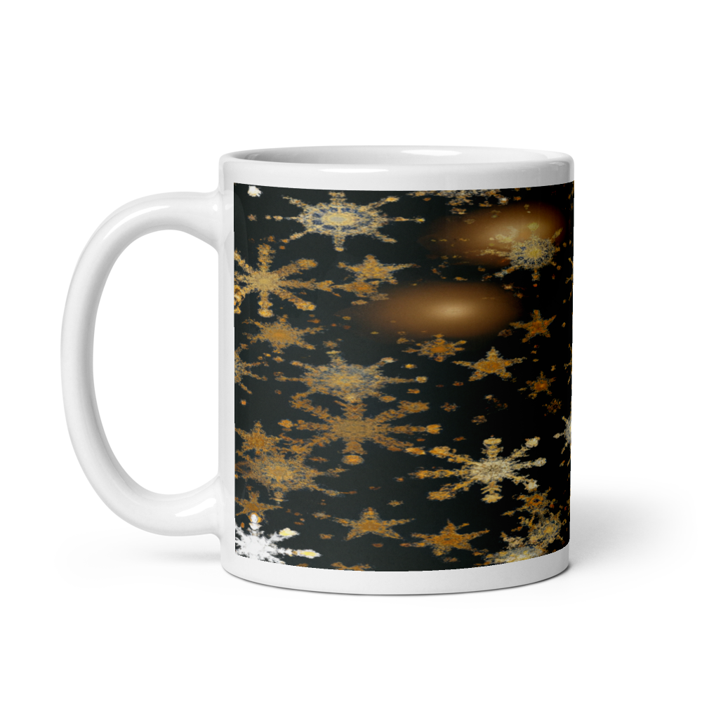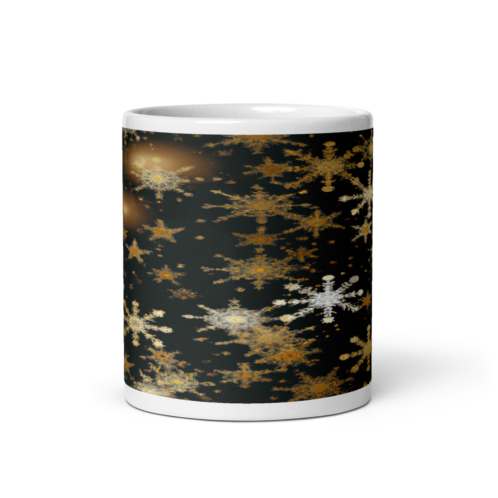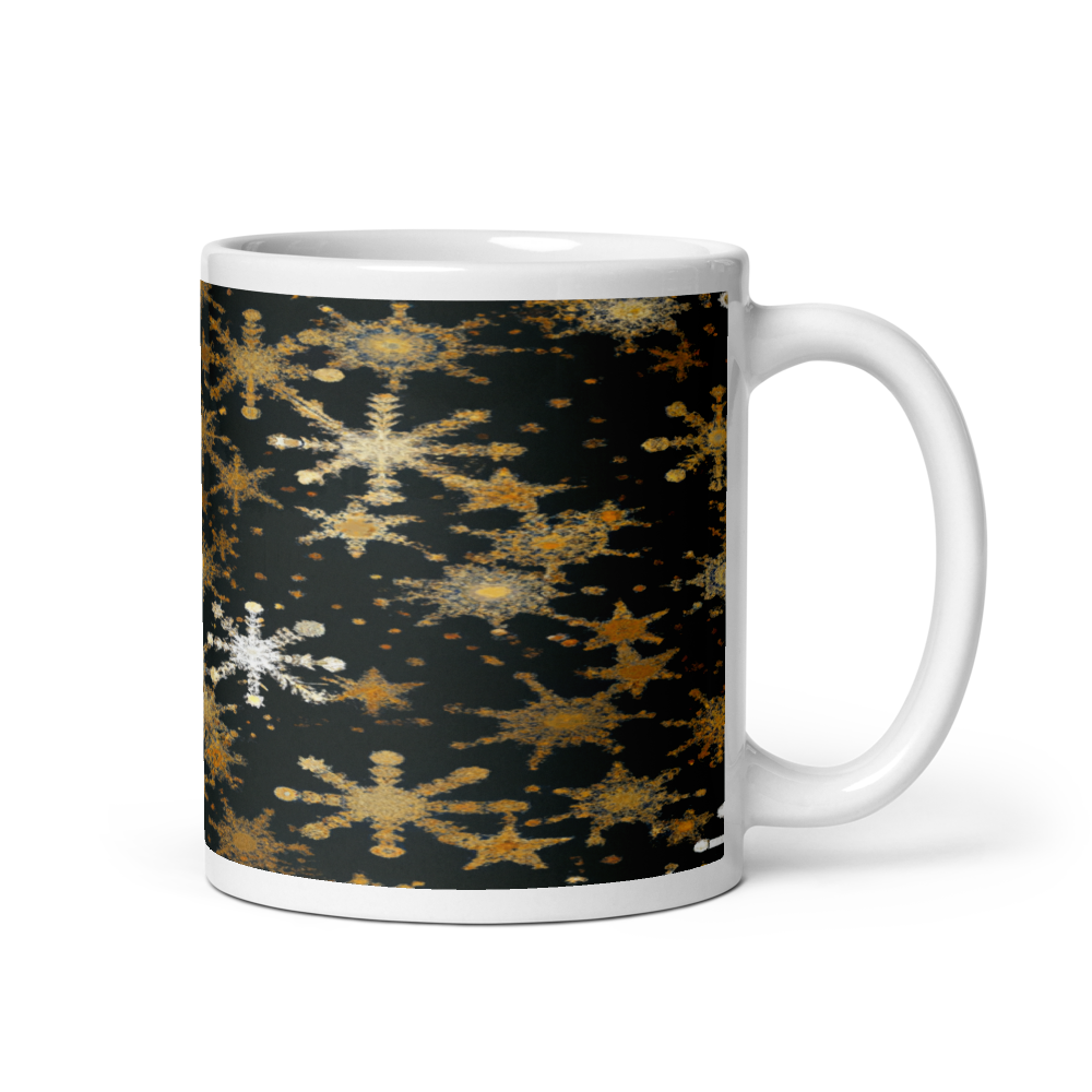 Winter Wonderland Dotted Stars and Snowflakes Silver and Gold 11oz Ceramic Mug