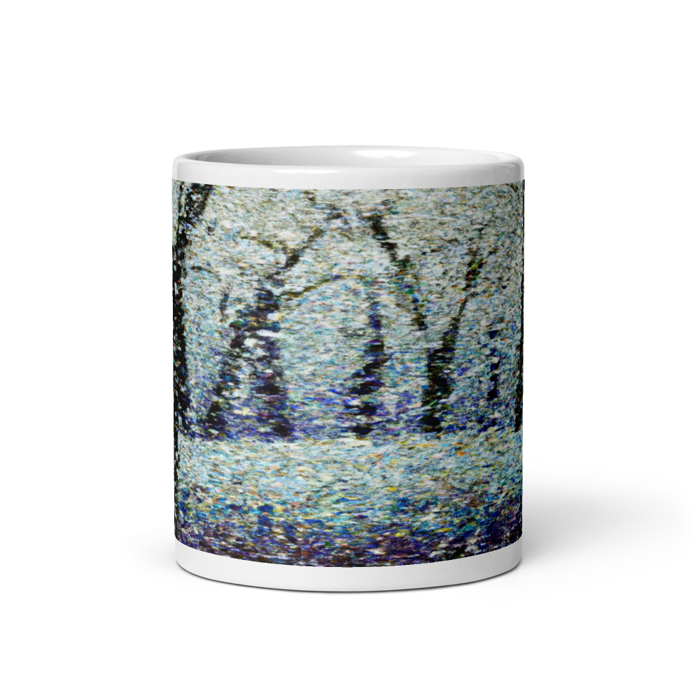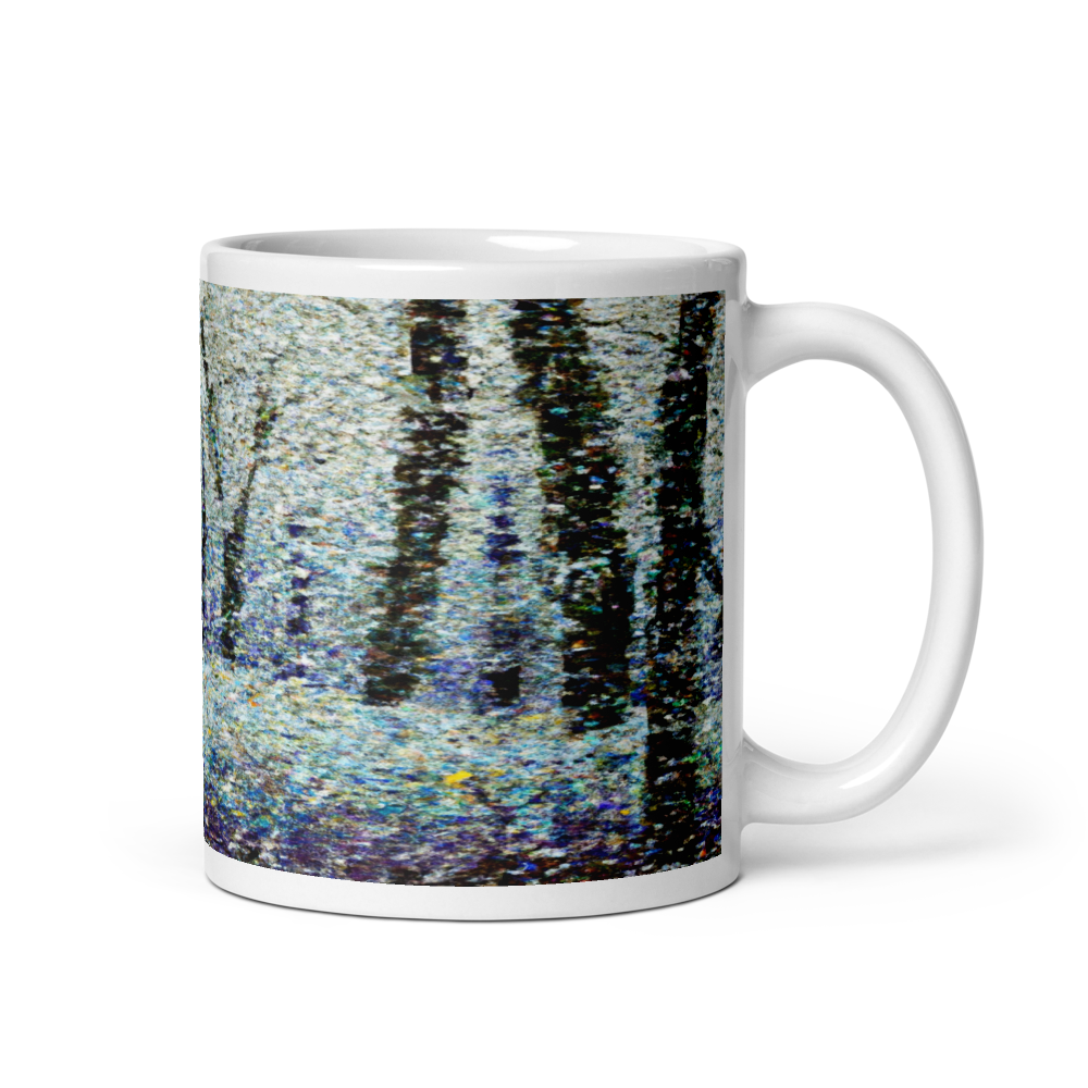 Winter Woods Dot Art Ceramic Mug – Serene Winter Woodland Scene Design